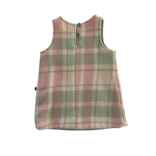 Woollen Pinafore Pink, Green and Cream with Green Bunny Lining