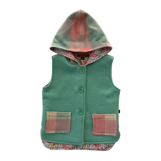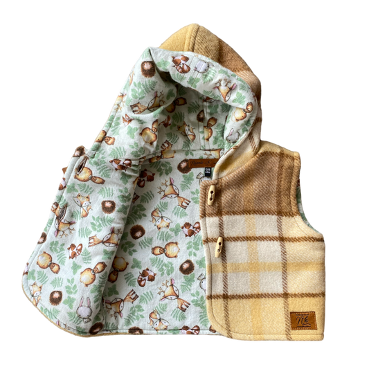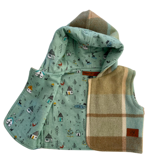 Woollen Baby Vest Green & Fawn with Forest Lining