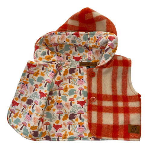 Woollen Baby Vest Orange/Cream with Woodland Animals