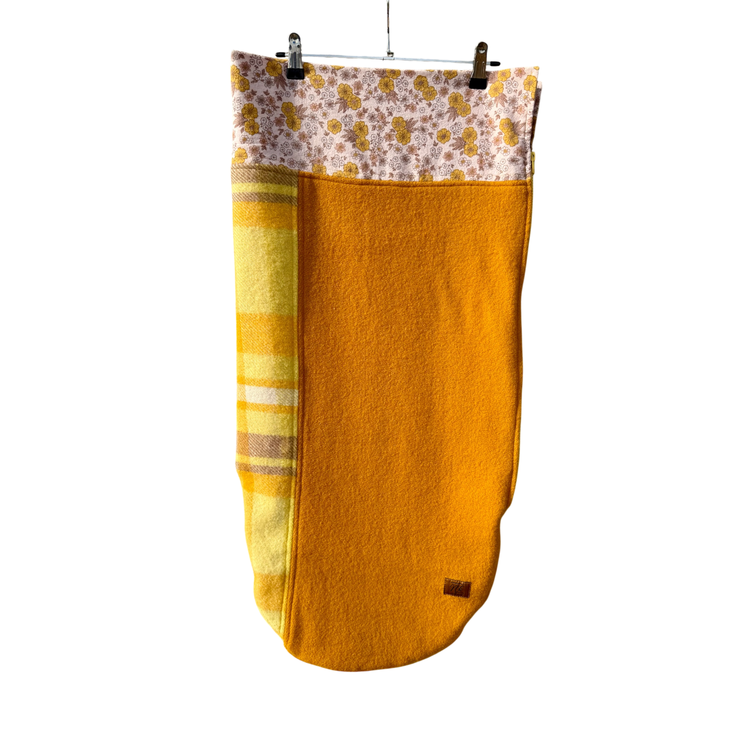 Made from upcycled New Zealand wool blankets and lined with 100% cotton. Perfect for chilly mornings and cooler days, this bag allows you to safely strap in your baby with just the right amount of warmth.